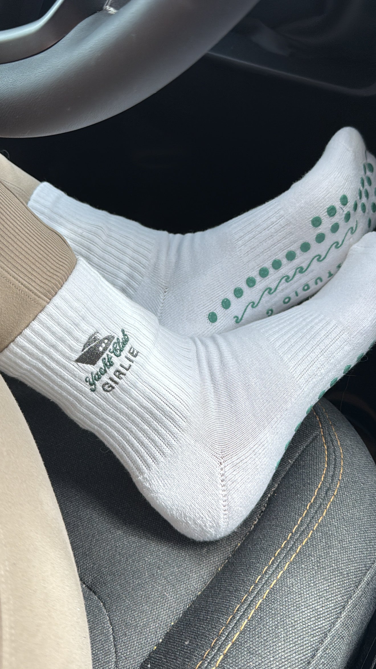 Made from a breathable cotton-spandex blend, these grip socks deliver smooth comfort and studio-ready stability.
